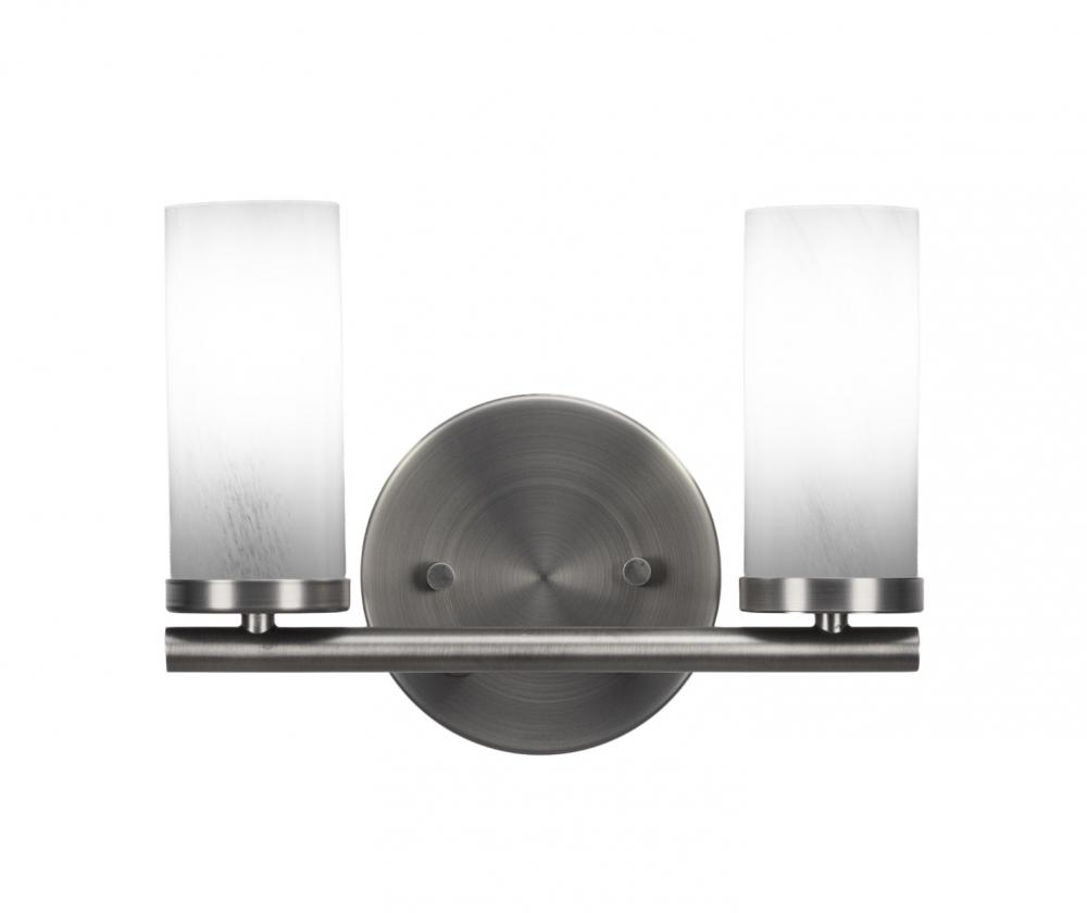 Toltec Lighting 2812-GP-811B Trinity 2 Light Bath Bar Shown In Graphite Finish With 2.5? White Marble Glass