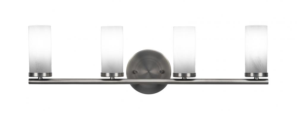 Toltec Lighting 2814-GP-811B Trinity 4 Light Bath Bar Shown In Graphite Finish With 2.5? White Marble Glass