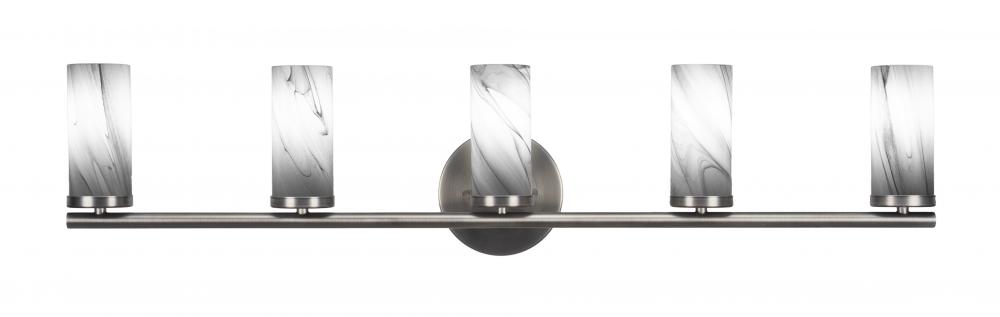 Toltec Lighting 2815-GP-802B Trinity 5 Light Bath Bar Shown In Graphite Finish With 2.5? Onyx Swirl Glass