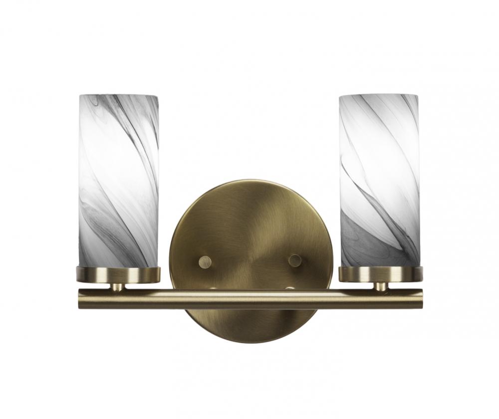 Toltec Lighting 2812-NAB-802B Trinity 2 Light Bath Bar Shown In New Age Brass Finish With 2.5? Onyx Swirl Glass