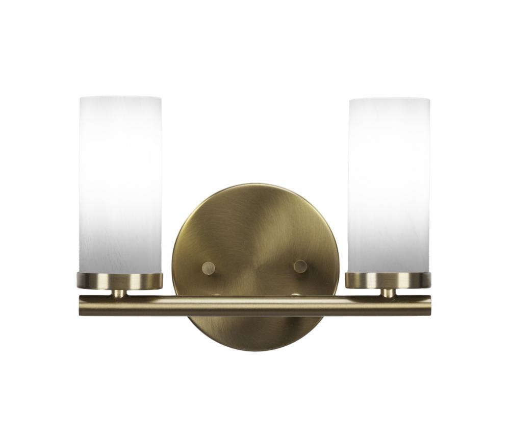 Toltec Lighting 2812-NAB-811B Trinity 2 Light Bath Bar Shown In New Age Brass Finish With 2.5? White Marble Glass