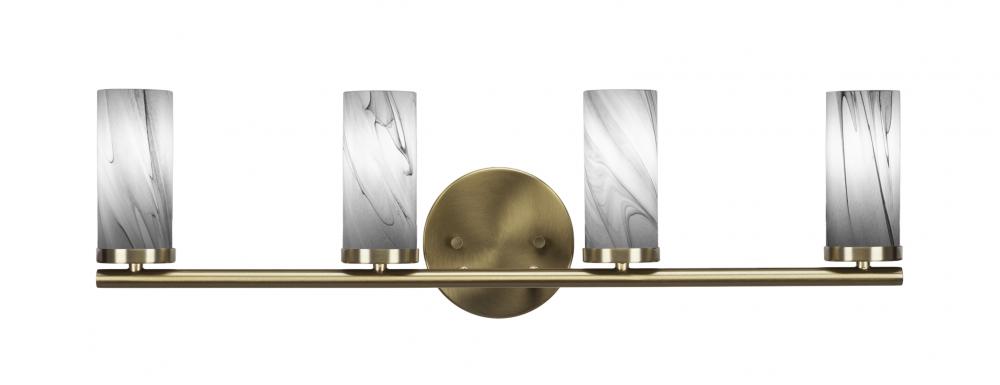 Toltec Lighting 2814-NAB-802B Trinity 4 Light Bath Bar Shown In New Age Brass Finish With 2.5? Onyx Swirl Glass