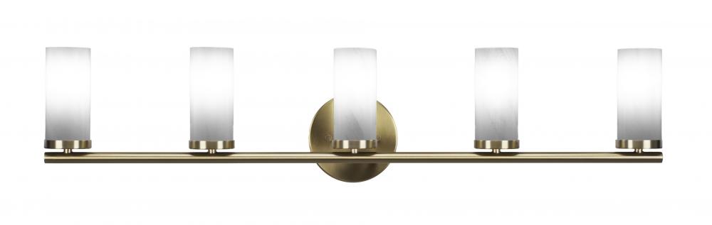 Toltec Lighting 2815-NAB-811B Trinity 5 Light Bath Bar Shown In New Age Brass Finish With 2.5? White Marble Glass