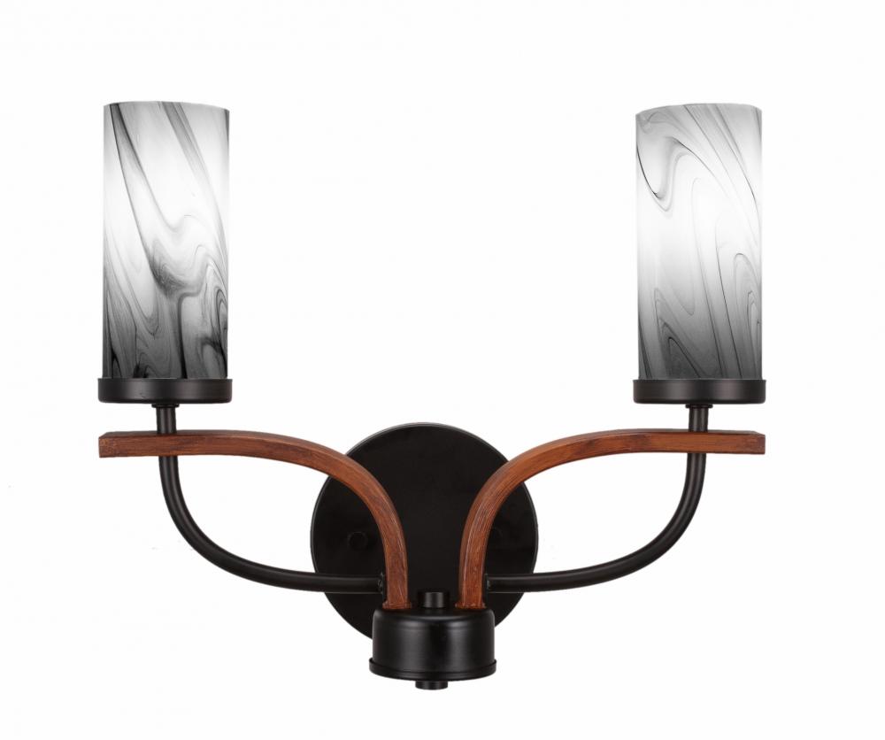 Monterey 2 Light Bath Bar Shown In Matte Black & Painted Wood-look Metal Finish With 2.5? Onyx Swirl Glass