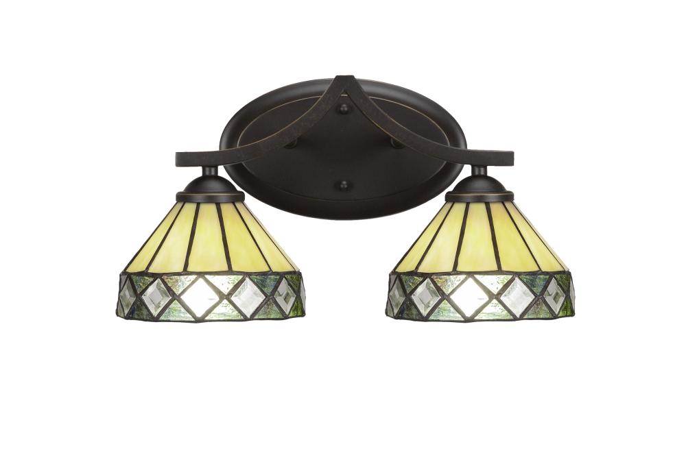 Zilo 2 Light Bath Bar Shown In Dark Granite Finish With 7 Diamond Peak Art Glass