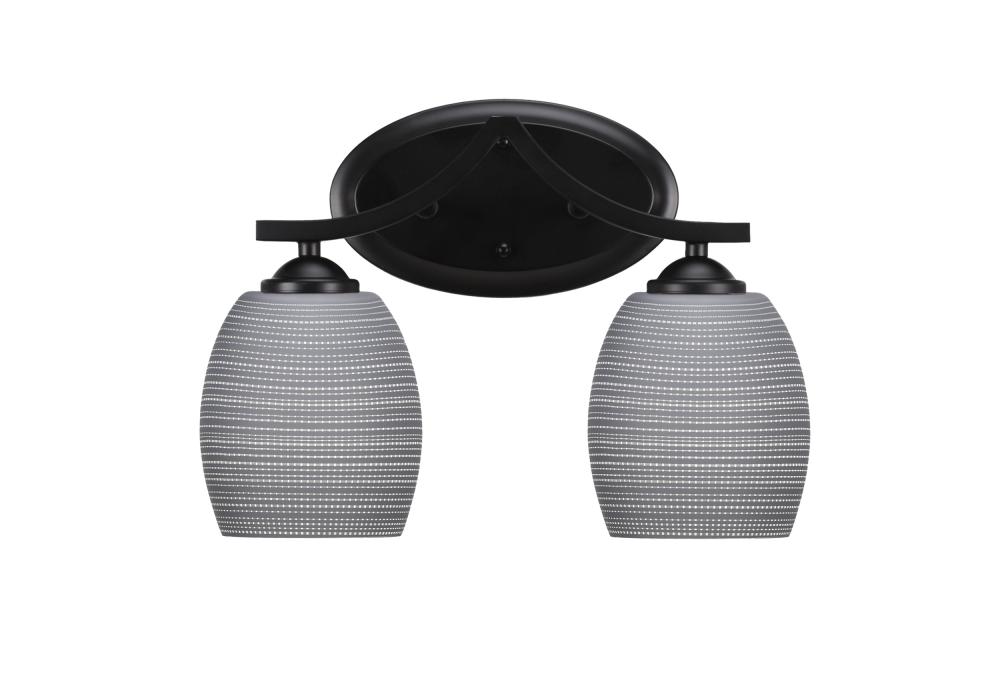Toltec Lighting 552-MB-4022 Zilo 2 Light Bath Bar Shown In Matte Black Finish With 5 Gray Matrix Glass