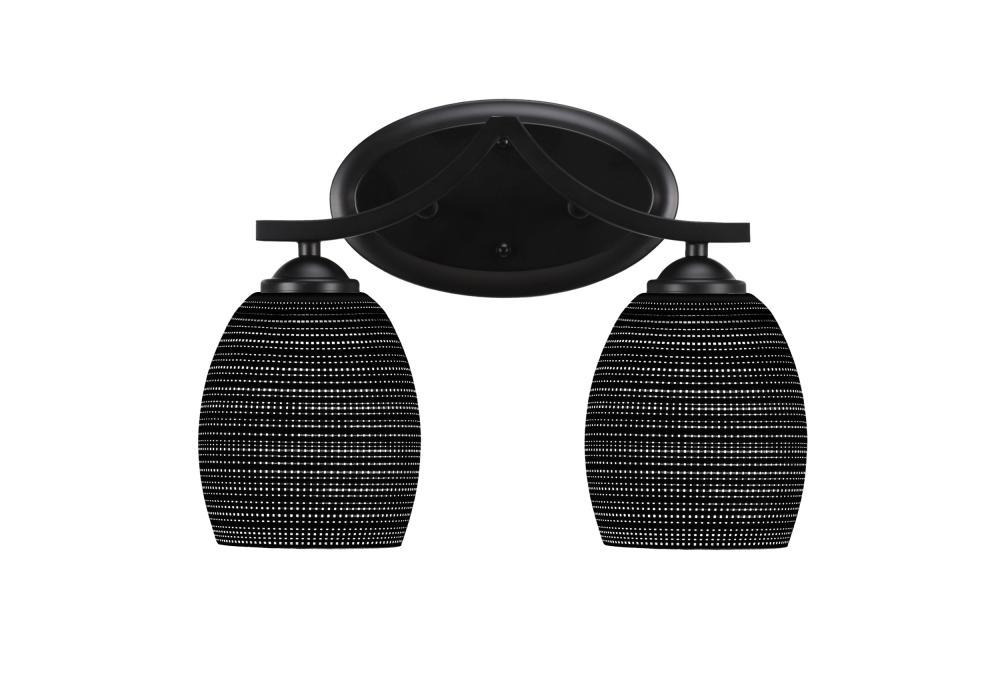 Zilo 2 Light Bath Bar Shown In Matte Black Finish With 5 Black Matrix Glass