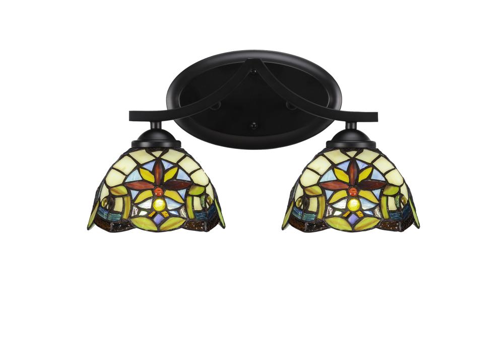 Toltec Lighting 552-MB-9365 Zilo 2 Light Bath Bar Shown In Matte Black Finish With 7 Earth Star Art Glass