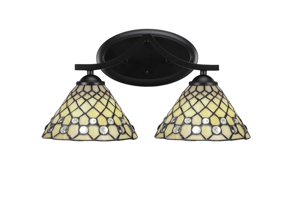 Toltec Lighting 552-MB-9415 Zilo 2 Light Bath Bar Shown In Matte Black Finish With 7 Starlight Art Glass