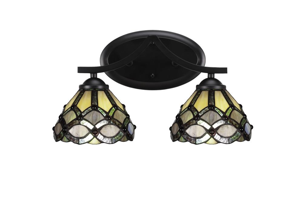 Toltec Lighting 552-MB-9435 Zilo 2 Light Bath Bar Shown In Matte Black Finish With 7 Grand Merlot Art Glass