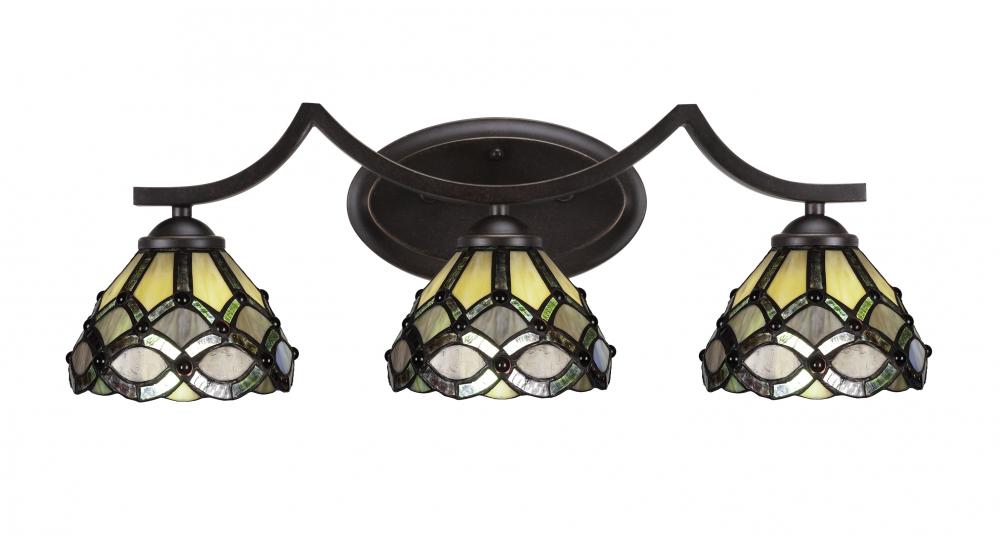 Toltec Lighting 553-DG-9435 Zilo 3 Light Bath Bar Shown In Dark Granite Finish With 7 Grand Merlot Art Glass