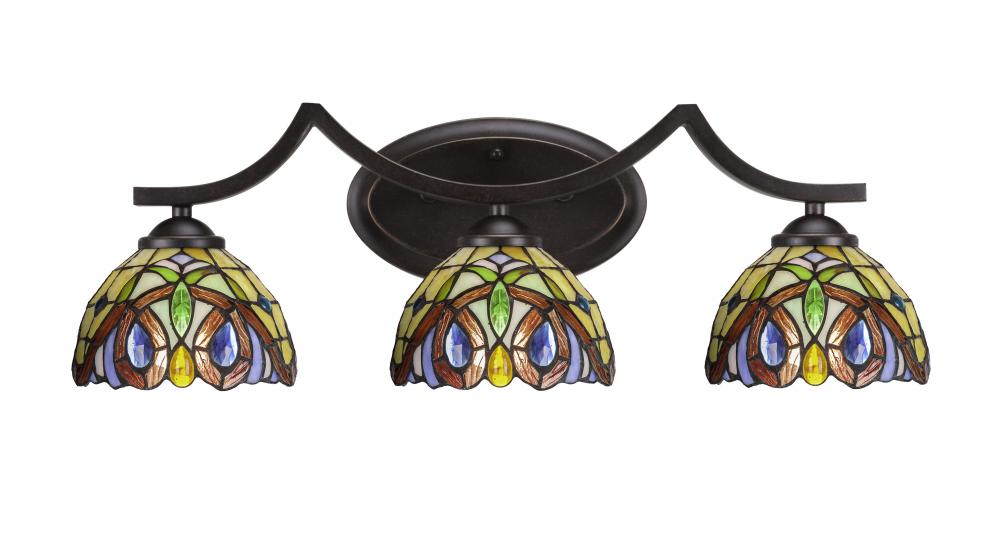 Toltec Lighting 553-DG-9445 Zilo 3 Light Bath Bar Shown In Dark Granite Finish With 7 Lynx Art Glass