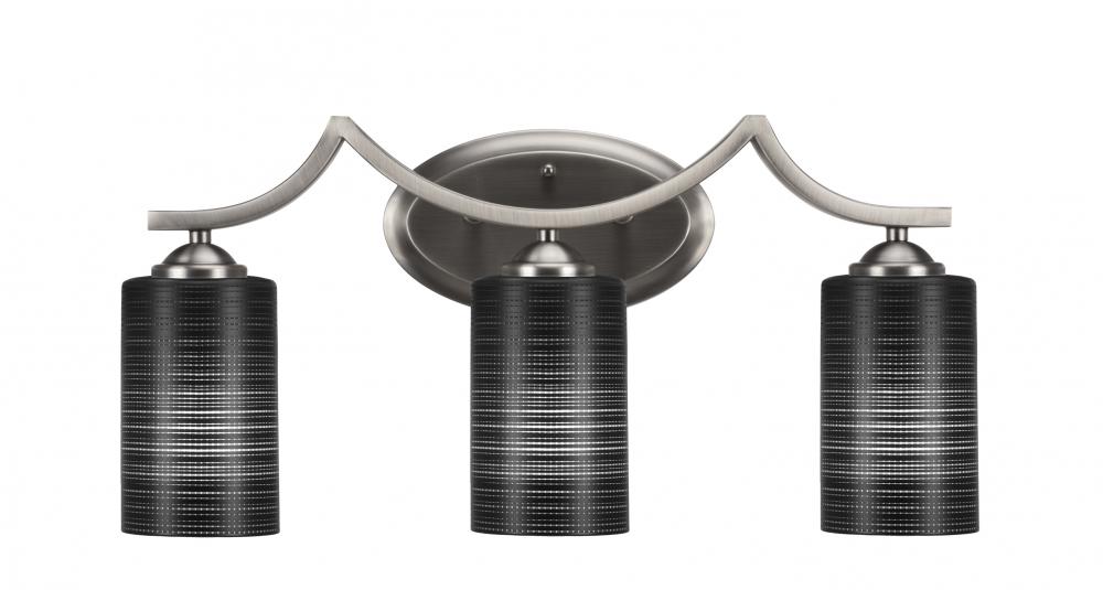 Zilo 3 Light Bath Bar Shown In Graphite Finish With 4 Black Matrix Glass