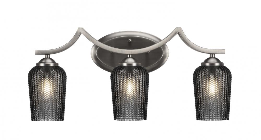 Toltec Lighting 553-GP-4252 Zilo 3 Light Bath Bar Shown In Graphite Finish With 5 Smoke Textured Glass