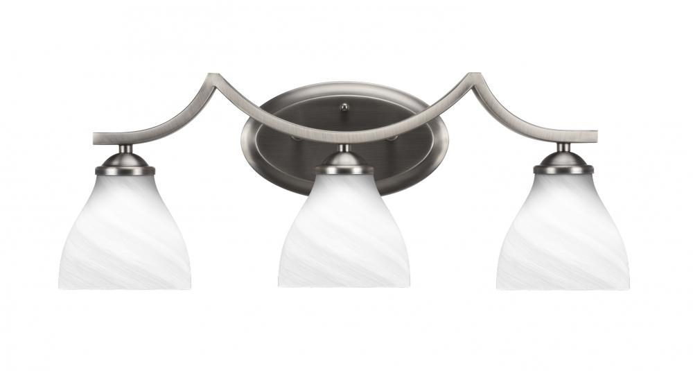 Toltec Lighting 553-GP-4761 Zilo 3 Light Bath Bar Shown In Graphite Finish With 6.25 White Marble Glass