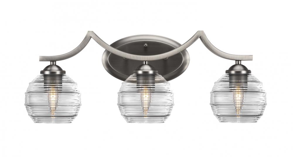 Toltec Lighting 553-GP-5110 Zilo 3 Light Bath Bar Shown In Graphite Finish With 6 Clear Ribbed Glass
