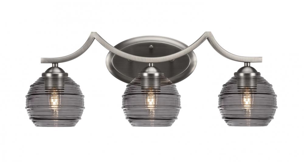 Toltec Lighting 553-GP-5112 Zilo 3 Light Bath Bar Shown In Graphite Finish With 6 Smoke Ribbed Glass