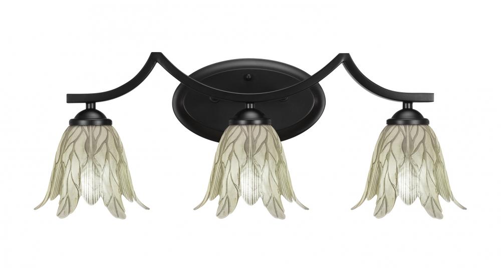 Toltec Lighting 553-MB-1025 Zilo 3 Light Bath Bar Shown In Matte Black Finish With 7 Vanilla Leaf Glass