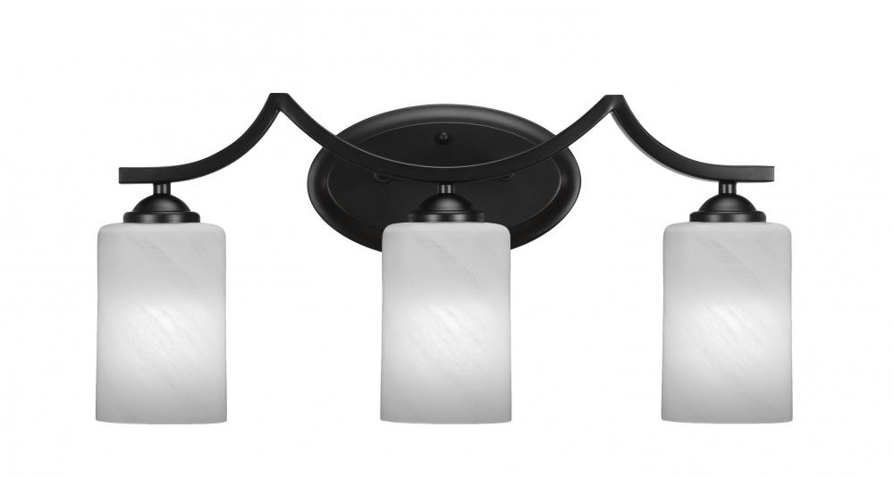 Toltec Lighting 553-MB-3001 Zilo 3 Light Bath Bar Shown In Matte Black Finish With 4 White Marble Glass