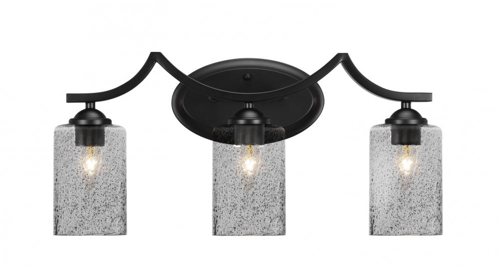 Toltec Lighting 553-MB-3002 Zilo 3 Light Bath Bar Shown In Matte Black Finish With 4 Smoke Bubble Glass