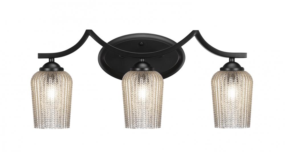 Toltec Lighting 553-MB-4253 Zilo 3 Light Bath Bar Shown In Matte Black Finish With 5 Silver Textured Glass