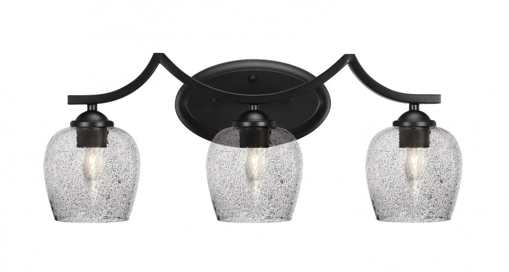 Toltec Lighting 553-MB-4812 Zilo 3 Light Bath Bar Shown In Matte Black Finish With 6 Smoke Bubble Glass