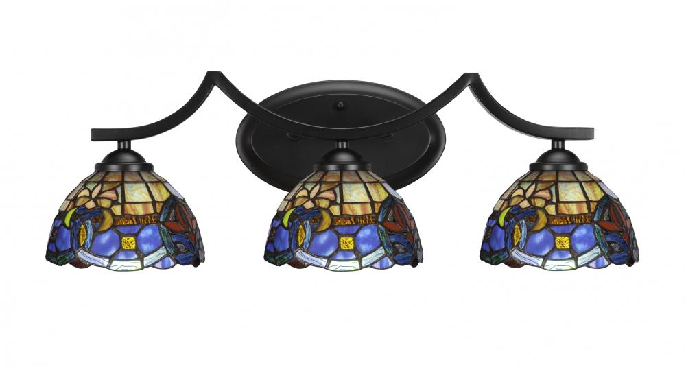Toltec Lighting 553-MB-9355 Zilo 3 Light Bath Bar Shown In Matte Black Finish With 7 Sierra Art Glass