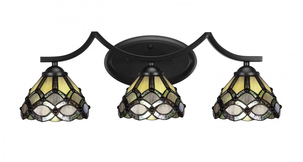 Toltec Lighting 553-MB-9435 Zilo 3 Light Bath Bar Shown In Matte Black Finish With 7 Grand Merlot Art Glass