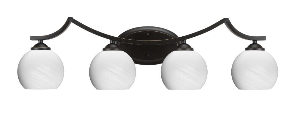 Toltec Lighting 554-DG-4101 Zilo 4 Light Bath Bar Shown In Dark Granite Finish With 5.75 White Marble Glass