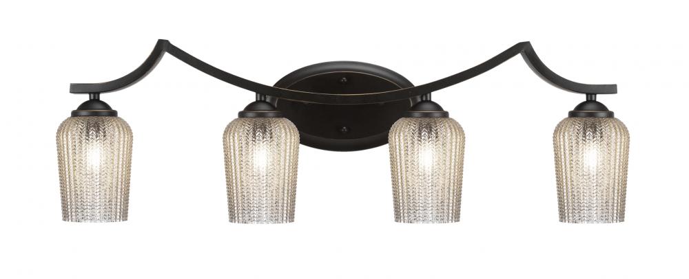 Toltec Lighting 554-DG-4253 Zilo 4 Light Bath Bar Shown In Dark Granite Finish With 5 Silver Textured Glass