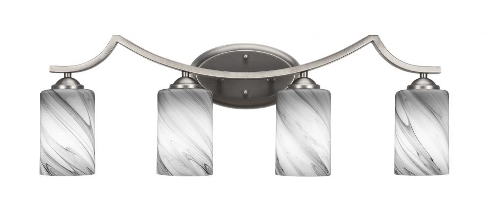 Zilo 4 Light Bath Bar Shown In Graphite Finish With 4 Onyx Swirl Glass