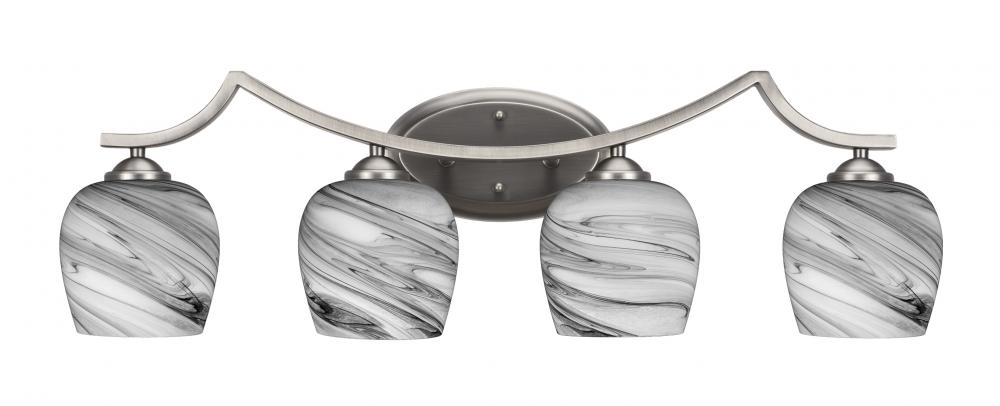 Zilo 4 Light Bath Bar Shown In Graphite Finish With 6 Onyx Swirl Glass