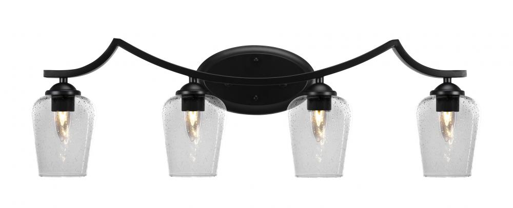 Zilo 4 Light Bath Bar Shown In Matte Black Finish With 5 Clear Bubble Glass