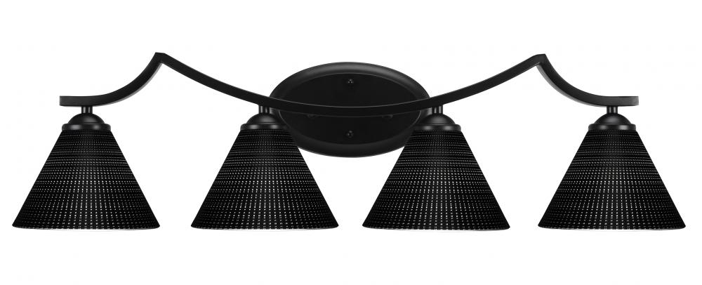 Zilo 4 Light Bath Bar Shown In Matte Black Finish With 7 Black Matrix Glass