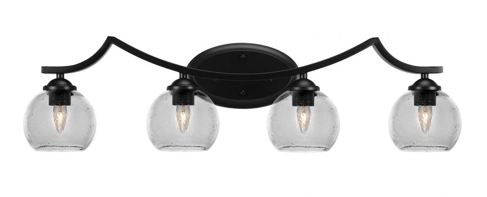 Zilo 4 Light Bath Bar Shown In Matte Black Finish With 5.75 Clear Bubble Glass