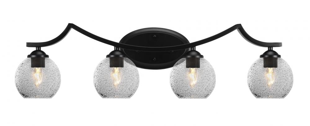 Zilo 4 Light Bath Bar Shown In Matte Black Finish With 5.75 Smoke Bubble Glass