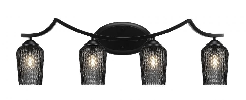 Zilo 4 Light Bath Bar Shown In Matte Black Finish With 5 Smoke Textured Glass