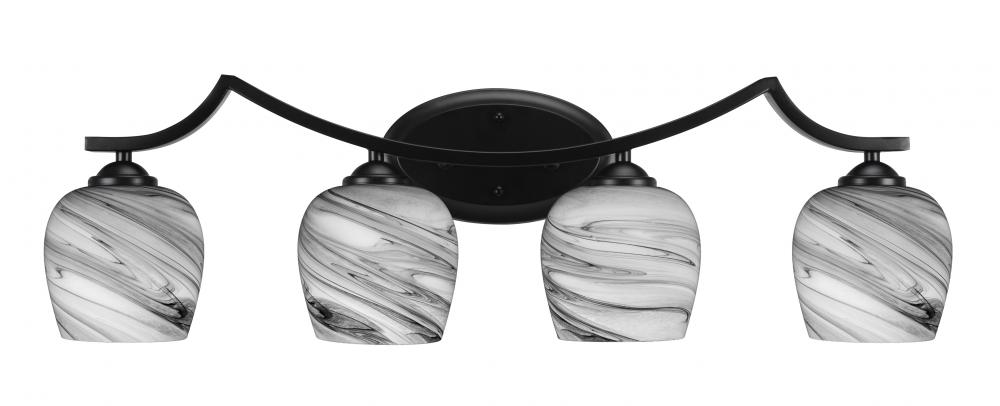 Zilo 4 Light Bath Bar Shown In Matte Black Finish With 6 Onyx Swirl Glass