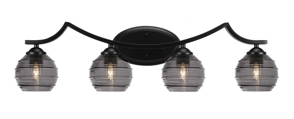 Zilo 4 Light Bath Bar Shown In Matte Black Finish With 6 Smoke Ribbed Glass