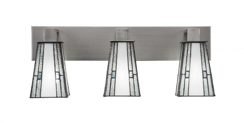 Toltec Lighting 583-GP-9534 Apollo 3 Light Bath Bar Shown In Graphite Finish With 5 Square Sky Ice Art Glass