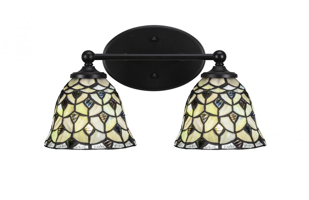 Toltec Lighting 5912-MB-9965 Capri 2 Light Bath Bar Shown In Matte Black Finish With 7 Crescent Art Glass