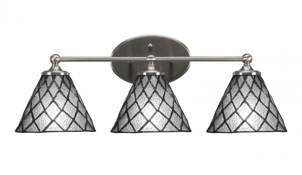 Capri 3 Light Bath Bar Shown In Brushed Nickel Finish With 7 Diamond Ice Art Glass