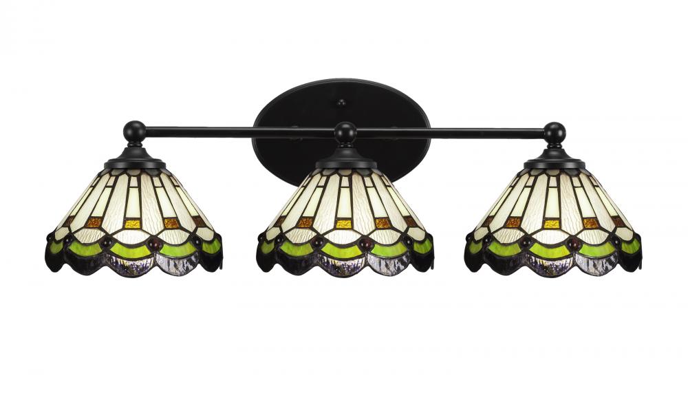 Toltec Lighting 5913-MB-9395 Capri 3 Light Bath Bar Shown In Matte Black Finish With 7 Cyprus Art Glass