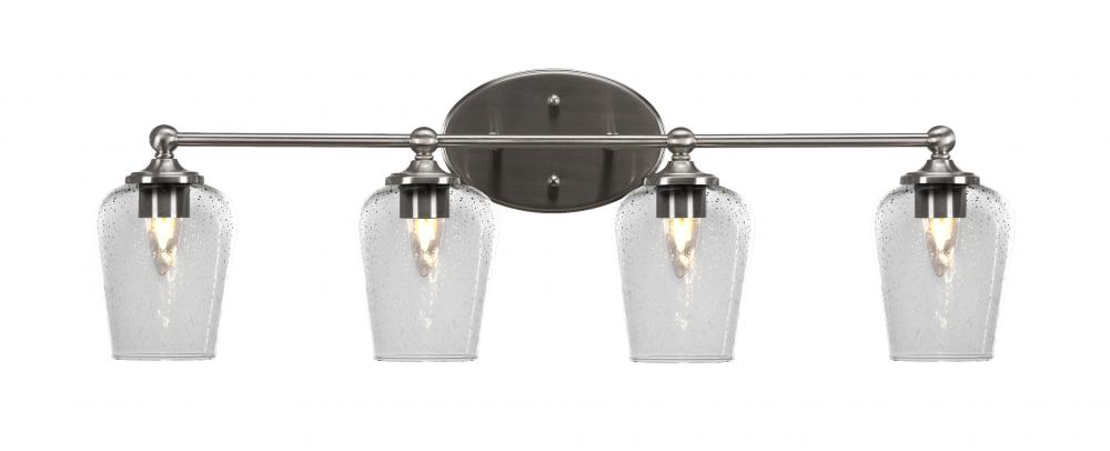 Capri 4 Light Bath Bar Shown In Brushed Nickel Finish With 5 Clear Bubble Glass