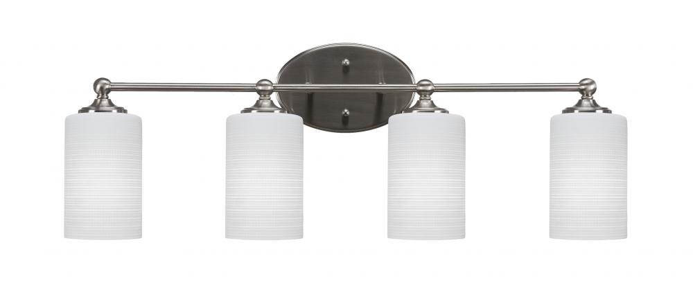 Capri 4 Light Bath Bar Shown In Brushed Nickel Finish With 4 White Matrix Glass