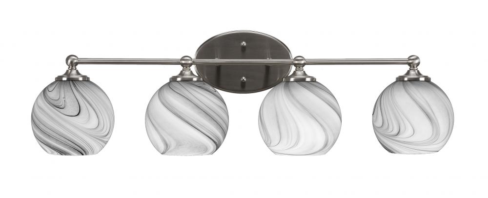 Capri 4 Light Bath Bar Shown In Brushed Nickel Finish With 5.75 Onyx Swirl Glass