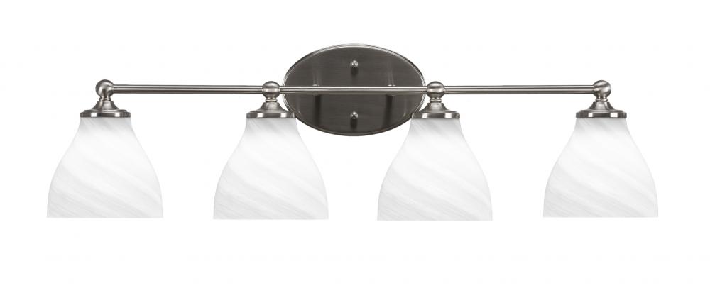 Capri 4 Light Bath Bar Shown In Brushed Nickel Finish With 6.25 White Marble Glass