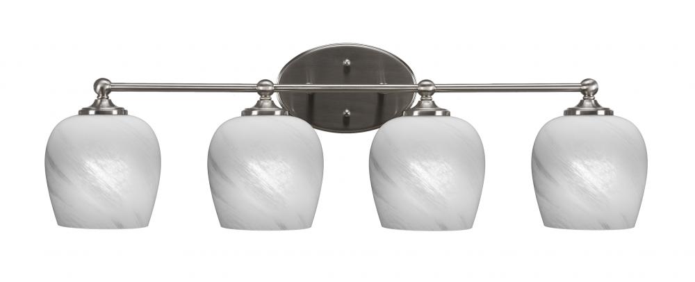 Capri 4 Light Bath Bar Shown In Brushed Nickel Finish With 6 White Marble Glass