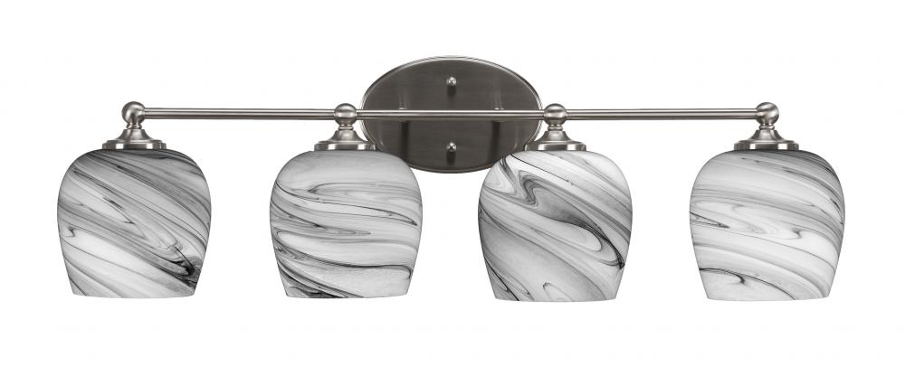 Capri 4 Light Bath Bar Shown In Brushed Nickel Finish With 6 Onyx Swirl Glass
