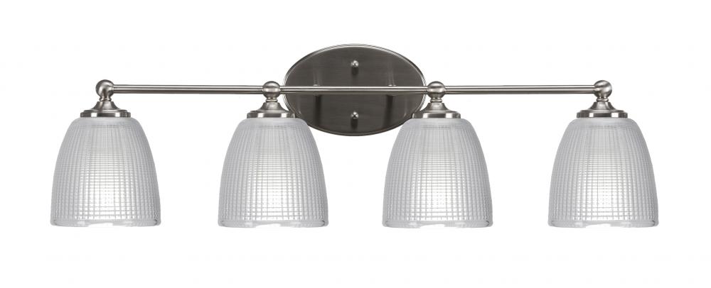 Capri 4 Light Bath Bar Shown In Brushed Nickel Finish With 5 Clear Ribbed Glass